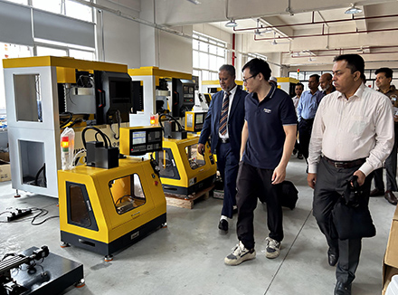 查看更多 +2023年5月29日,廣東育菁裝備公司總經(jīng)理?xiàng)钕壬哟齺?lái)自孟加拉教育部人員來(lái)我公司進(jìn)行實(shí)地參觀考察桌面式數(shù)控機(jī)床生產(chǎn)車間......